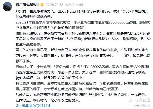 有些人看不清小米现在的恶,还在踩格力。我想为格力说句公道话。