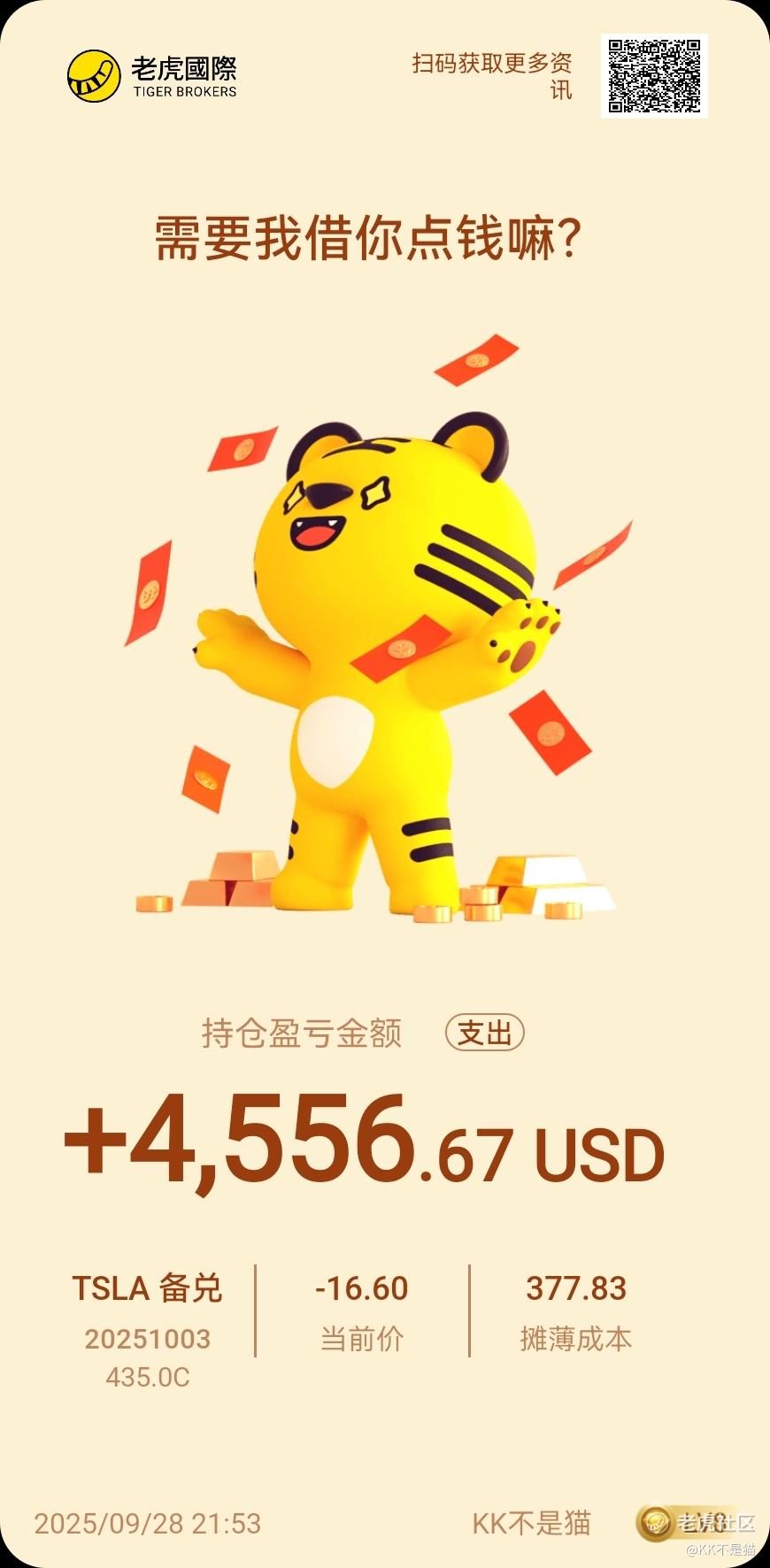 $特斯拉 备兑 251003 CALL 435.0$ 开仓实值备兑期权做下行保护至408,也是短期破位走空点。