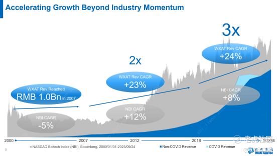 25年来,药明康德以质量、速度和能力规模不断赢得客户的信任,收获业绩的持续高速增长。在周期波动的行业环境下,药明康德展现出少有的韧性与确定性。