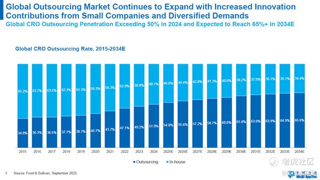 根据Frost & Sullivan数据,2024年,全球新药研发中CRO服务占比首次突破50%,预计到2034年将进一步升至65%以上。