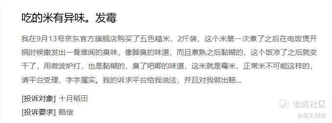 十月稻田的核心产品大米也频频被投诉存在质量问题。
