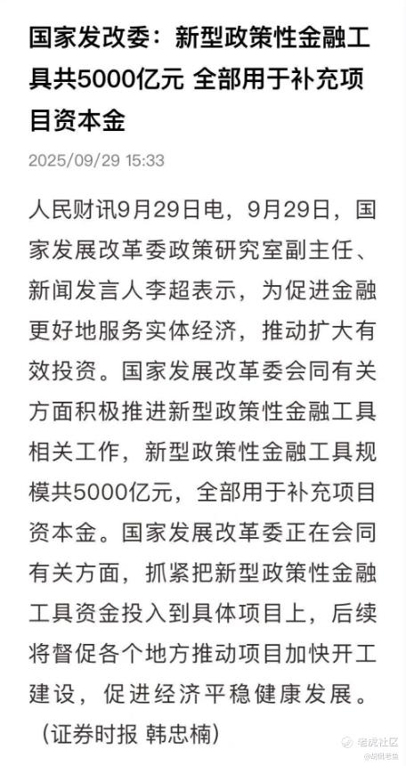 记住几个关键词:新型、政策性工具、五千亿、补充项目资本金