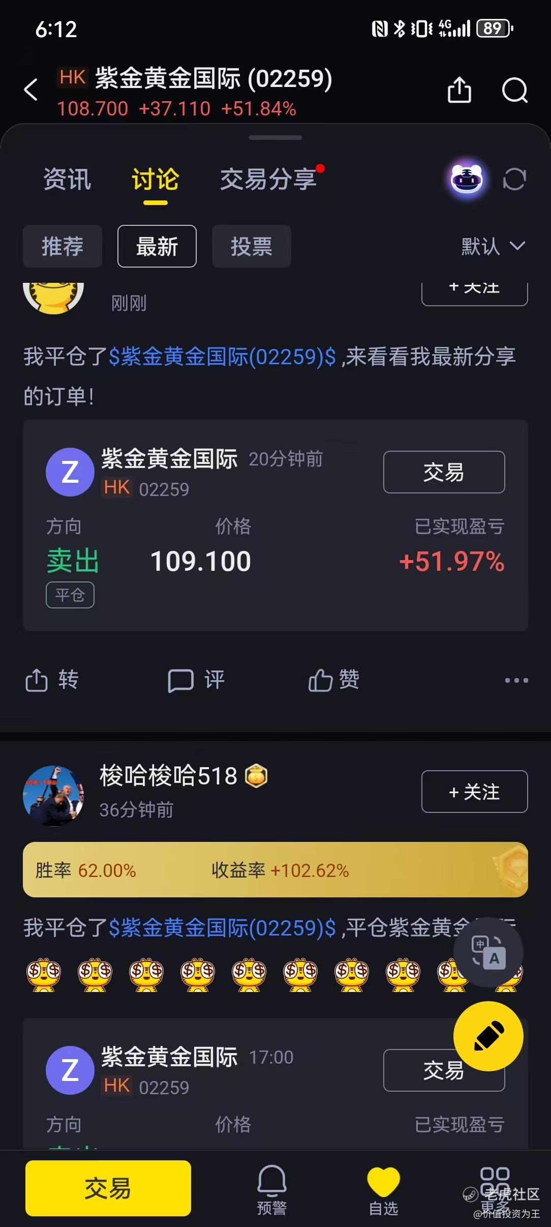 今天是紫金黄金国际暗盘交易日,涨幅超过50%,最高达57%: $紫金黄金国际(02259)$