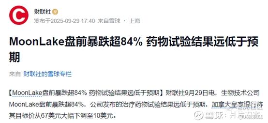 MoonLake Immunotherapeutics(NASDAQ: MLTX)唯一核心管线 sonelokimab 银屑病 III 期第二次中期分析疗效差异不足30%,SAE翻倍,股价单日-89%,现金仅够烧到2025Q4,宣布“寻求战略替代方案”——实质卖壳。