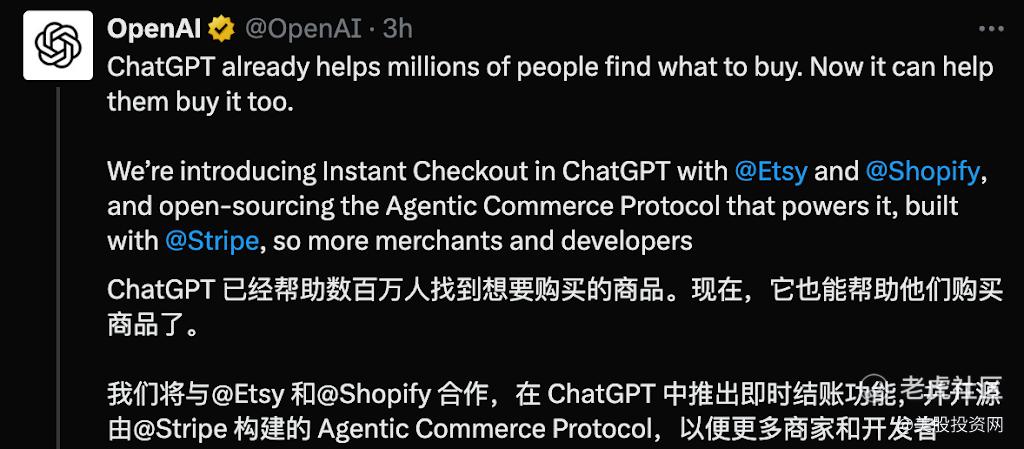 用户授权与代理行为: 虽然目前购买过程仍需用户明确同意每一步,但OpenAI已暗示,未来用户可能授权ChatGPT或其他AI模型以“代理”方式,根据提示自动完成购买。这不仅将颠覆企业设计网站和向消费者推销的方式,更将推动电子商务从“用户寻找商品”转向“AI代理购买”的范式转移。