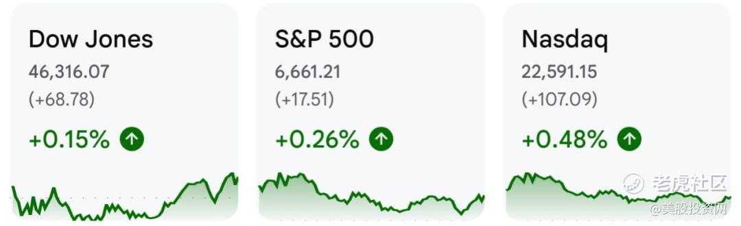 截止收盘,标普500涨幅0.26%;道指涨幅0.15%;纳指涨幅0.48%;