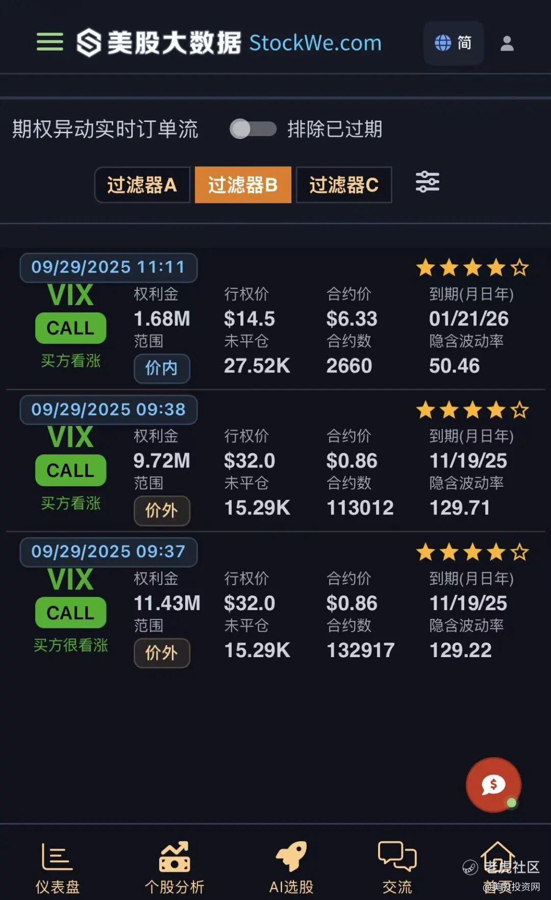 今天,美股AI大数据分析工具美股大数据 StockWe.com 捕捉到,机构交易员买入恐慌指数”VIX价值高达2283万美元的看涨期权,其中2115万美元的权利金押注在了行权价高达32美元、到期日为11月19日的高度价外合约上。