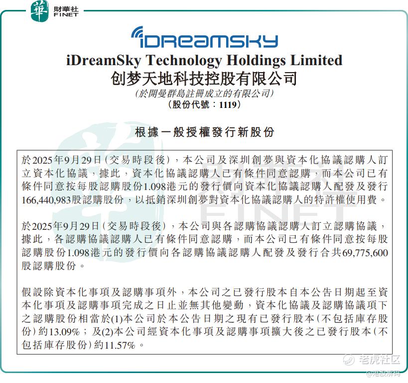 此外,创梦天地还与各认购协议认购人订立认购协议。公司将按每股认购股份1.098港元的发行价,向各认购协议认购人配发及发行合共6977.56万股认购股份。