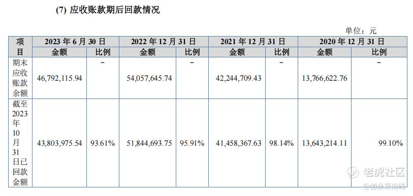 招股书显示,2020年、2021年、2022年及2023年上半年,芭薇股份应收账款期后回款率分别为99.1%、98.14%、95.91%及93.61%,呈现连年下跌之势。