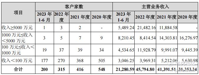 招股书显示,芭薇股份客户数量从2020年的548家减少至2023年上半年的200家。同期,公司前五大客户占营业收入的比重持续增长,从36.02%增长至61.55%。其中,销售前三名的客户分别为广州蜚美(占比25.75%)、仁和集团(占比18.03%)、护家科技(占比14.17%),销售额占比合计约58%