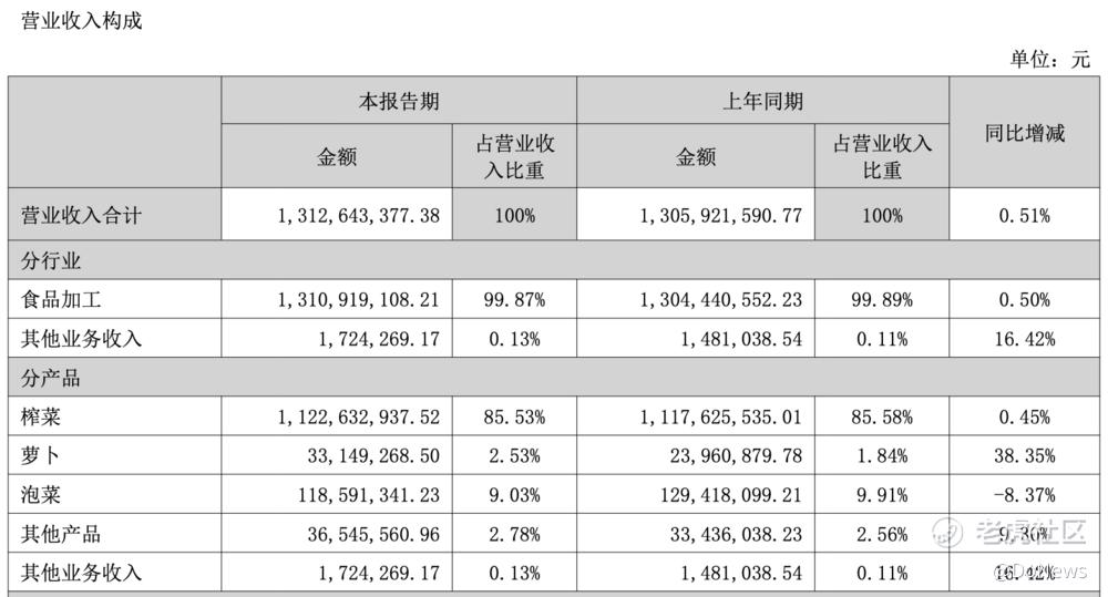 2025年上半年,涪陵榨菜食品加工行业的收入为13.11亿元,毛利率高达54.15%,其中,榨菜品类的毛利率为58.08%。