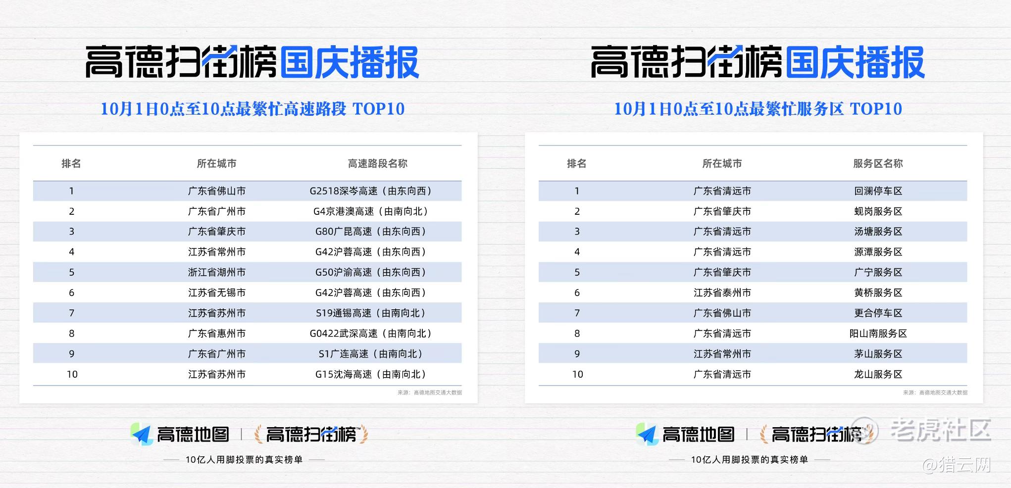 10月1日,2025年十一黄金周首日出行高峰如期而至。高德交通大数据显示,10月1日0点至10点,广东的高速、火车站、机场等繁忙程度全面领跑全国,全国最繁忙十大高速服务区,广东独占8席。国庆0点全国高速迎来出行第一波高峰,4点为出行波谷,与高德此前预测一致。不少听劝网友选择错峰,“跑赢”后感慨“高德是有点东西的,不然我也不能让它帮我找南北”。