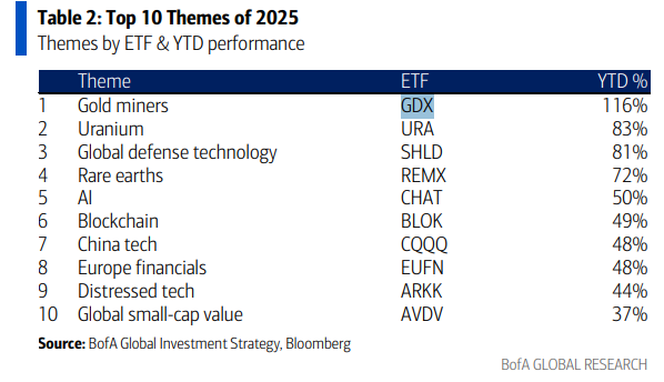 遍地黄金呀,看看BofA Global Research整理的2025年十大投资主题: