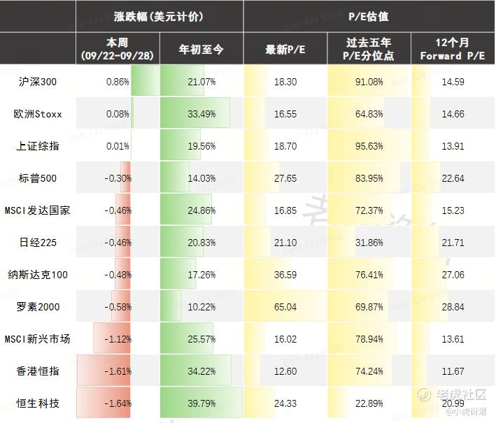 一、全球重要股指表现和估值:
