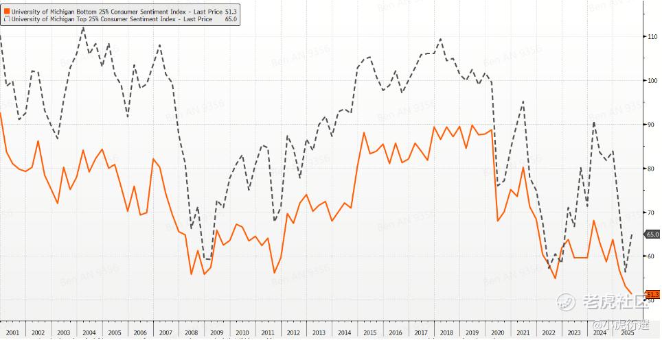 整体来看,美国经济仍展现韧性,就业市场虽有降温迹象,但在降息周期缓冲下,对需求的冲击有限。即使市场有担忧,即使资金面在逆风,但“金发女孩”的叙事未被根本动摇。需要注意的是,消费整体虽然强劲,但是结构上存在隐患,二季度消费增量中约65%来自高收入群体的财富效应;而根据密歇根大学的调查数据,低收入家庭的消费信心已跌至本世纪次低水平,中长期消费持续性仍存隐忧。
