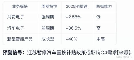 风险提示:需密切关注江苏暂停汽车置换补贴政策对Q4需求影响[来源],以及苹果供应链订单波动风险。
