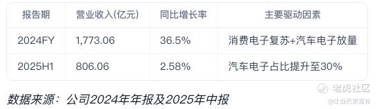 汽车电子业务实现跨越式增长,2025H1收入贡献达30%