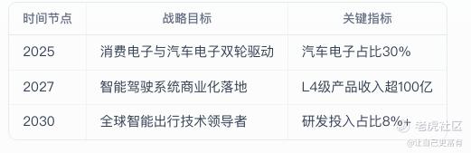 业务重构:汽车电子收入占比提升至50%(2030年)