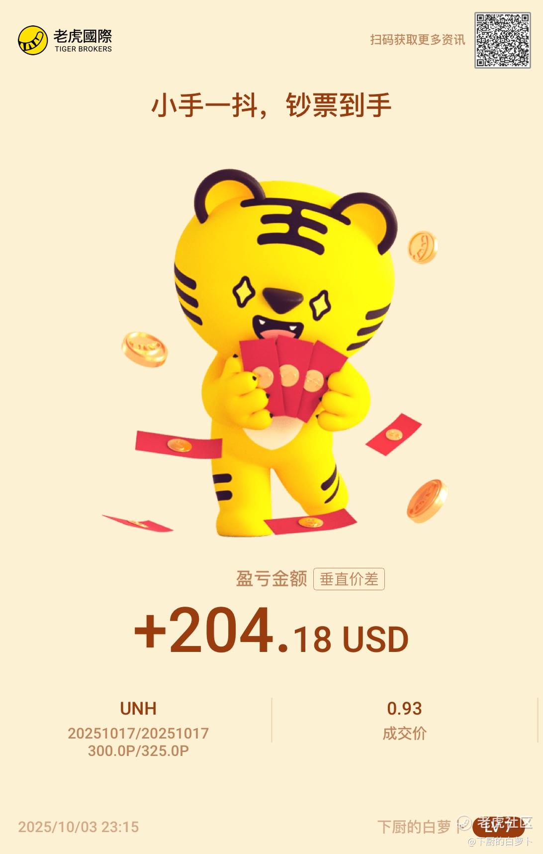 $联合健康 垂直价差 251017 PUT 300.0/PUT 325.0$ 使用价差策略就是为了限制最大亏损,在看错的时候不会亏太多,长期看是赚钱的。