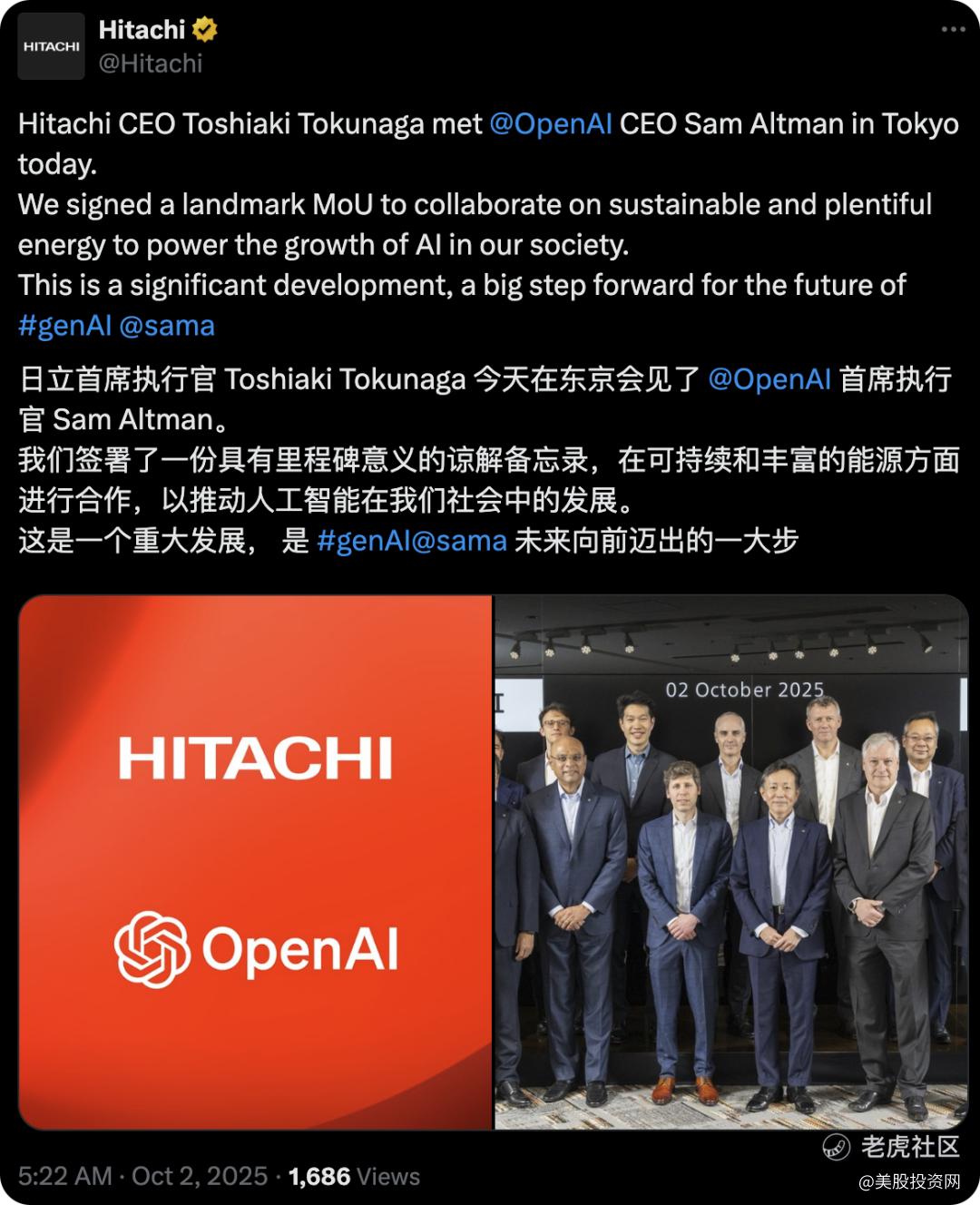 AI基础设施建设热潮是支撑早盘上涨的核心动力。据美股投资网了解到OpenAI与日立达成合作、贝莱德将达成数据中心收购交易的消息,进一步点燃了AI投资的狂热情绪。受此提振,芯片股指数早盘也刷新历史高点,相关科技股顺势上扬,英伟达盘初一度涨近0.8%。