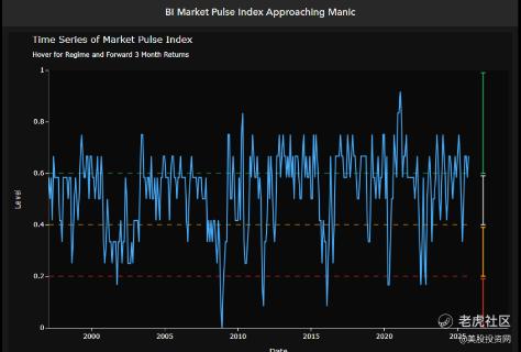 彭博行业研究的市场脉搏指数,作为衡量市场广度、个股相关性等因素的指标,已连续保持在“狂热”区间。历史数据显示,处于此区间时,罗素3000指数在随后三个月内平均仍能上涨约9%,但分析师仍将其视为一个“非常早期的预警信号”。