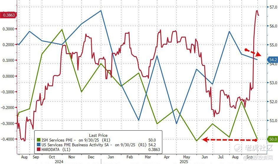 美国供应管理协会(ISM)公布的9月美国ISM服务业PMI超预期回落至50。更值得警惕的是,其商业活动分项指数五年以来首次跌入50下方的收缩区间。这份逊色的数据表明,美国服务业扩张势头显著放缓,对经济增长前景的担忧瞬间压过了此前的乐观情绪,导致股指涨幅迅速收窄。