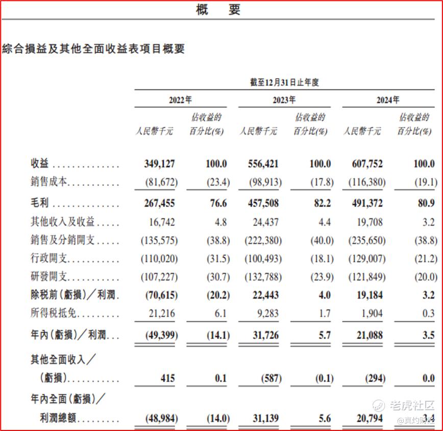 药物管线的拓展与销量的增加,表现为为公司业绩的快速增长。具体来看,公司的营业收益从2022年的人民币3.49亿元增长至2024年的人民币6.08亿元,年复合增长率达31.9%;同期毛利由人民币2.68亿元提升至4.91亿元,盈利能力持续增强。2023年及2024年,公司分别实现利润人民币0.32亿元及0.21亿元;2025年前三个月利润达0.13亿元,净利润率升至9.4%,体现出良好的成本控制与运营效率。