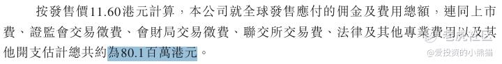 然后这个票招股书上按发售价11.60港元计算,公开的上市所有开支总额约为8010万港元,募资额约7.81亿港元,占比约10.26%,开支相比募资额算是一般化了。