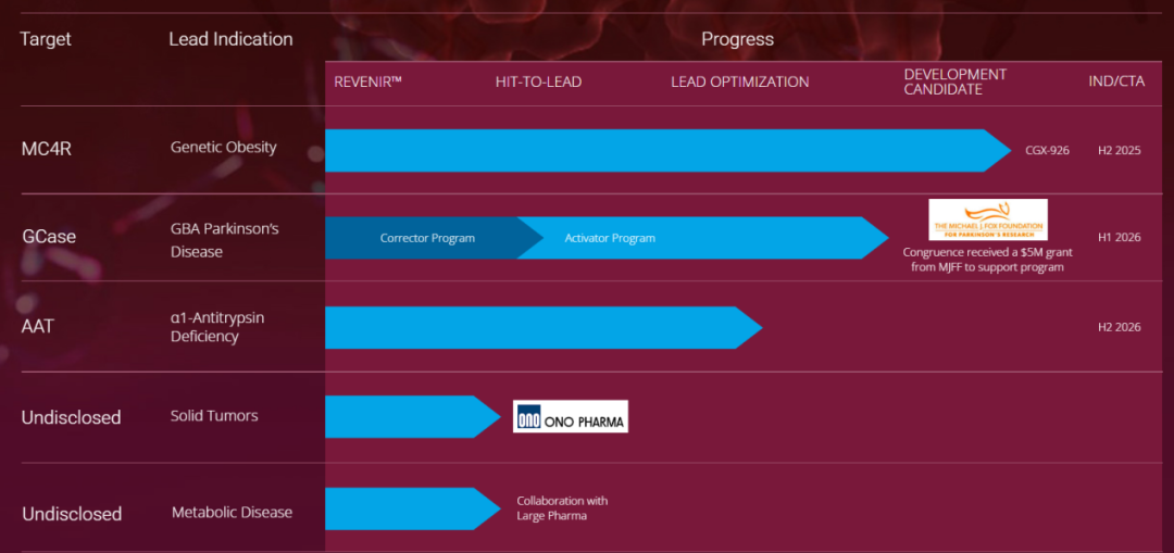 除了开发CGX-926之外,Congruence还计划将其针对帕金森病和α-1抗胰蛋白酶(A1AT)缺乏症的治疗项目推进至临床前测试的后期阶段。