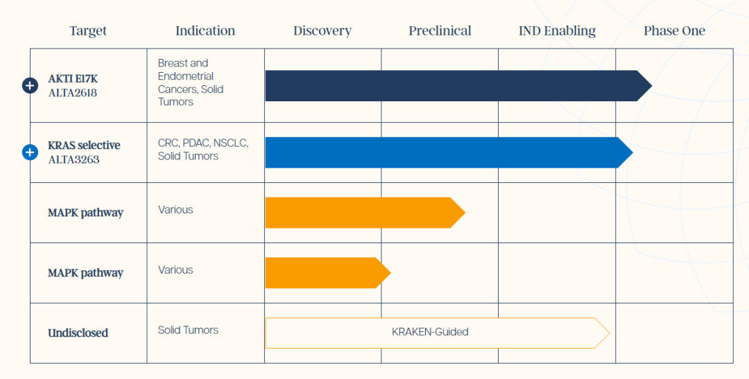 目前,Alterome的在研管线均处于临床前阶段,其中最为重要的是共价AKT1 E17K突变选择性抑制剂和KRAS亚型选择性抑制剂,靶向90%的KRAS突变,包括最常见的突变G12V和G12D,预计将在今年开始临床测试。