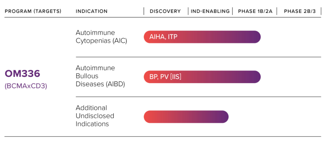 公司的目标是用工程化T细胞衔接器(T-cell engager)替代长期免疫抑制方案,以提升疗效与药物可及性。Ouro Medicines引入的药物CM336是一种BCMAxCD3双特异性抗体,目前正在持续推进一项评价CM336注射液治疗复发或难治性多发性骨髓瘤患者的多中心、开放性的临床1/2期研究,并获FDA孤儿药资格用以治疗自身免疫性溶血性贫血(AIHA)。