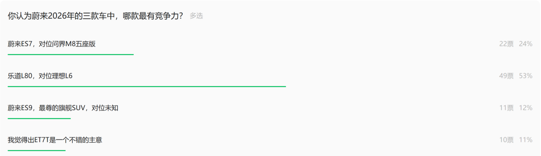 按照惯例,先聊聊上一轮对于蔚来在2026年面临市场竞争预期的投票的情况: