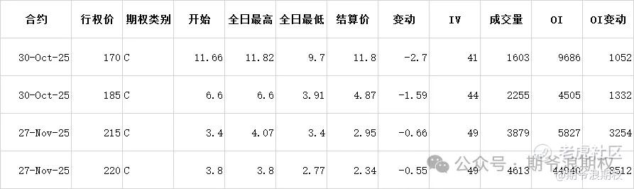 (2)阿里:10月最大持仓范围100-170,窝轮牛熊街货分布120-200,今收177.6,下跌1.61%。期权盘路变化超过1000张的仓位如下,跟国庆期间的前几天比,活跃度有所下降。不过市场总体保持乐观,继续看好阿里。