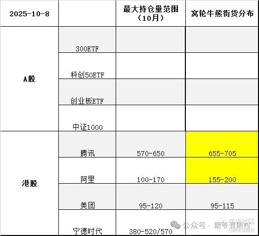明天大A开市,港股延续昨天的行情,继续滑铁卢,绿得很统一。下图是今天港股的腾讯、阿里、美团和宁德时代的最大持仓量范围以及窝轮牛熊分布范围,也就是10月的资金筹码分布,黄色的表示跟上个交易日有变动。