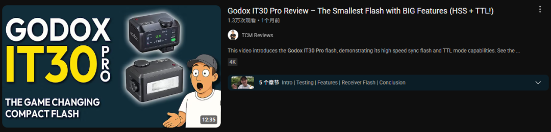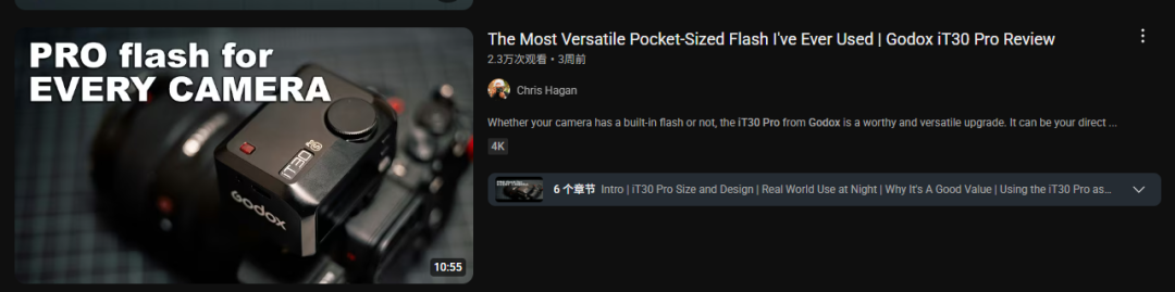 最近因为想给我的相机配个闪光灯,所以在找便宜的闪光灯,开始关注到一个品牌,在海外叫Godox,后来发现是个国内摄影器材公司,中文名叫神牛。然后我看了YouTube和B站的评测,发现它新出的闪光灯IT30 Pro几乎是集轻便和性能于一身,如果配合上富士相机的机身,简直文艺范爆表,果断购买,价格也就是不到500元人民币,和索尼原厂实现同样性能的闪光灯相比差不多只有1/4到1/5的价格。