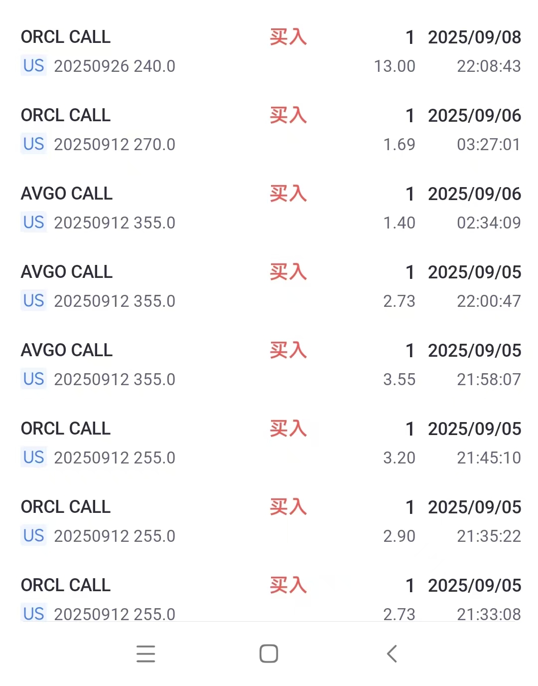 甲骨文财报战:提前布局远价外 call,看好其 AI 订单逻辑,结果财报日暴涨 27%,最高订单突破 5000 亿市值。