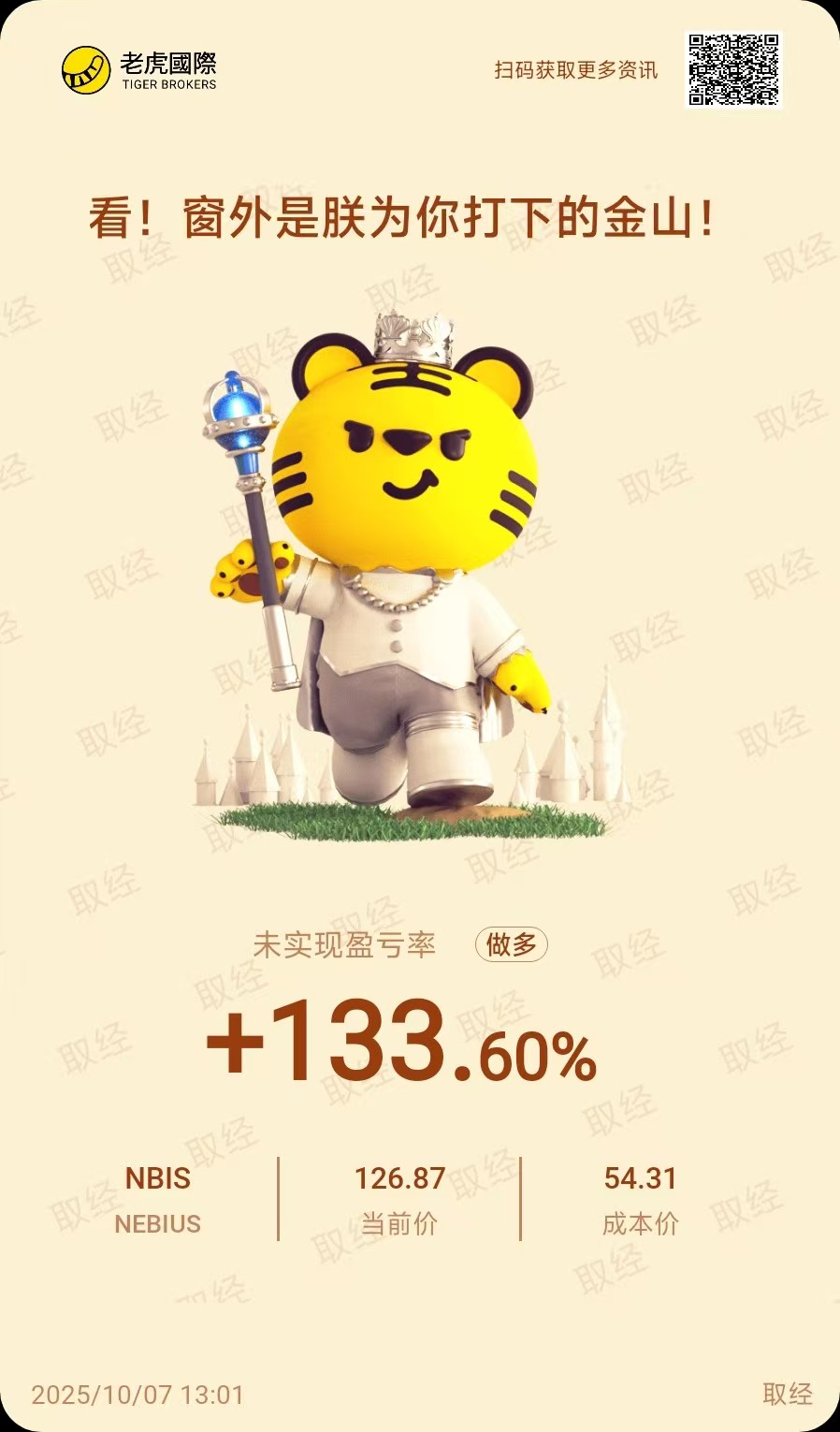 各位小虎们国庆过得还好吗?[你懂的]🥰🥰本期访谈,我们走进来自云南昆明的虎友——@取经。他白天是餐饮夜市从业者,夜晚却是专注于美股、港股与期权交易的老虎“十年粉”。从最初的“割肉小白”到如今紧跟AI浪潮、年内收益持续增长,老杨用近十年的时间,走出了一条属于普通投资者的稳健成长路。他信奉“少盯盘、少操作=多赚钱”,坚信耐心与学习才是市场中最宝贵的财富。