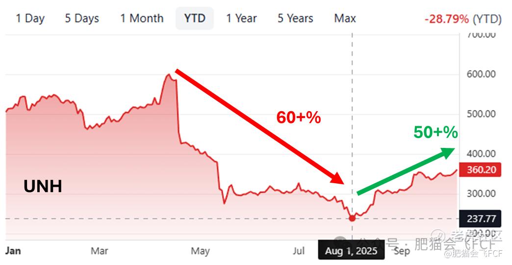 另外,值得一提的是,最近一个月UNH $联合健康(UNH)$ 累计上涨16.7%,自8月份低点234.60美元以来已反弹超过50%。UNH在肥猫的频道已经花费不少篇幅来讨论,它的盈利能力和商业质量想必大家都有所了解,这里就不赘述了。今天只是顺带拿它当作一个案例,因为它恰好契合我们今天要谈的话题——“风险”。