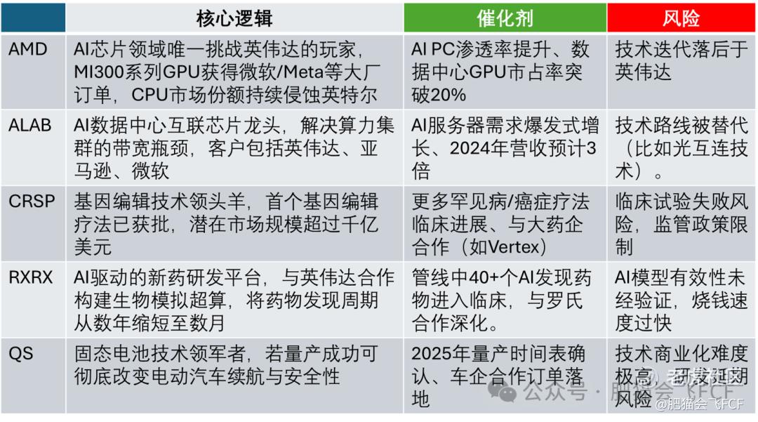 下面这张表格是从某位博主整理的《未来可能有10倍增长的美股》里截取的部分内容,这里肥猫不对其中任何公司作评价,仅作为案例说明。光看他列出的“风险分析”,都是投资者无法预测更不必说控制的不确定性。如果认同该博主的推荐逻辑和催化剂,那么你只能被动接受所有所谓的“风险”。因此这样的“风险分析”对投资者而言几乎毫无意义。