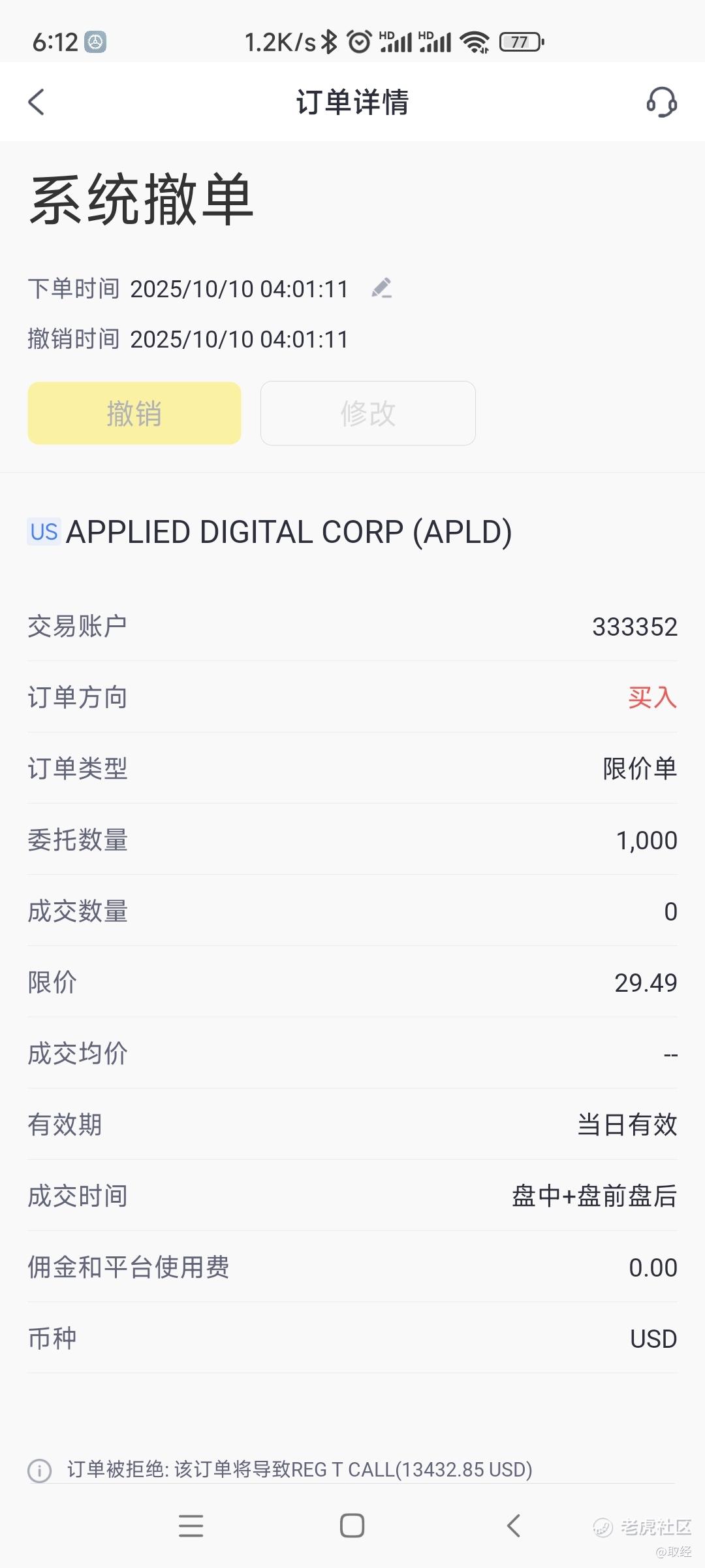 $APLD 20251107 27.5 CALL$ +14%有点小遗憾,盘后04:01分:加仓正股1000股没加成功被系统撤销了。虽不然到现在也盈利14%,也差不多4500刀了$英伟达(NVDA)$ $APPLIED DIGITAL CORP(APLD)$ $NEBIUS(NBIS)$