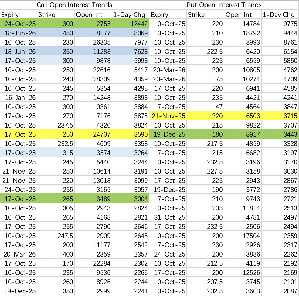 另外也有低位sell call 大单,行权价250 $AMD 20251024 250.0 CALL$ ,感觉很容易被逼空。