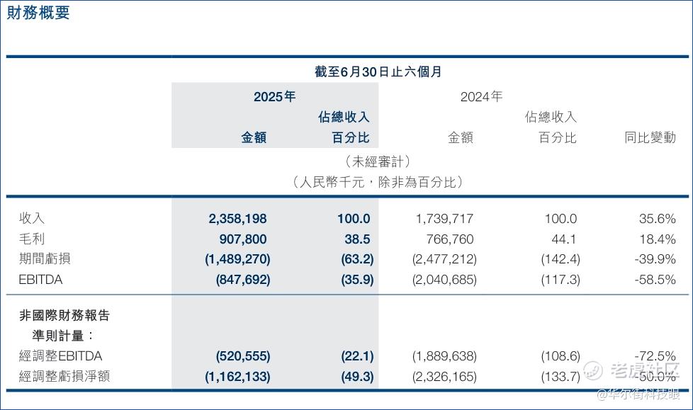 此外,X 创新业务(生态矩阵业务)上半年营收 1.06 亿元,同比下降 39.7%。需要注意的是,本期财报已剥离部分亏损严重的业务 —— 例如 “绝影” 智能汽车业务仅统计智能驾驶相关收入,智能座舱、绝影 AI 云业务未纳入核算,本质是通过调整统计口径减少财务亏损的一种做法。