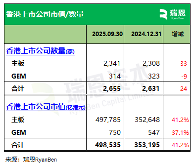 截至2025年9月30日,港交所上市公司2,655家,其中: