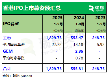 香港IPO市场:2025前三季度,新上市69家、募资1830亿