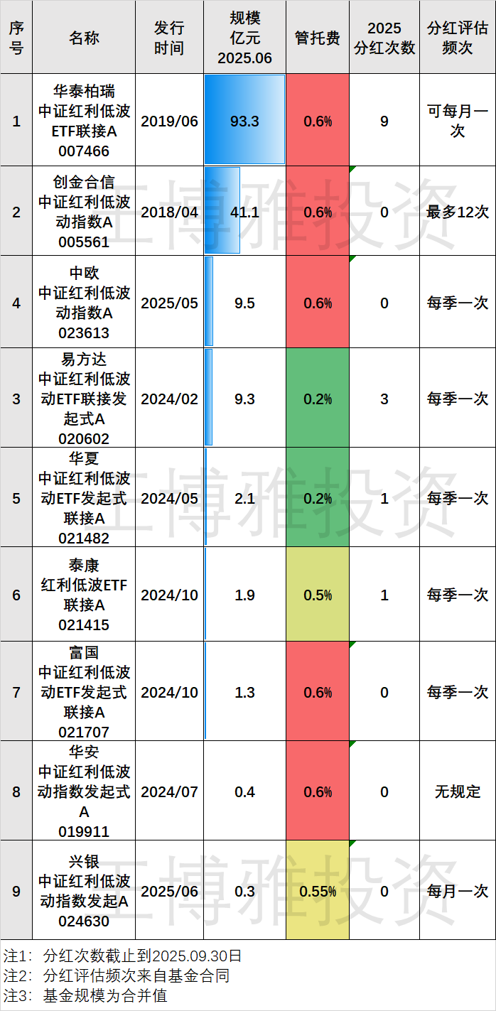(2)9支基金中有7支是最近两年成立的,这也反映了红利低波正在受到基金公司和投资者的重视。