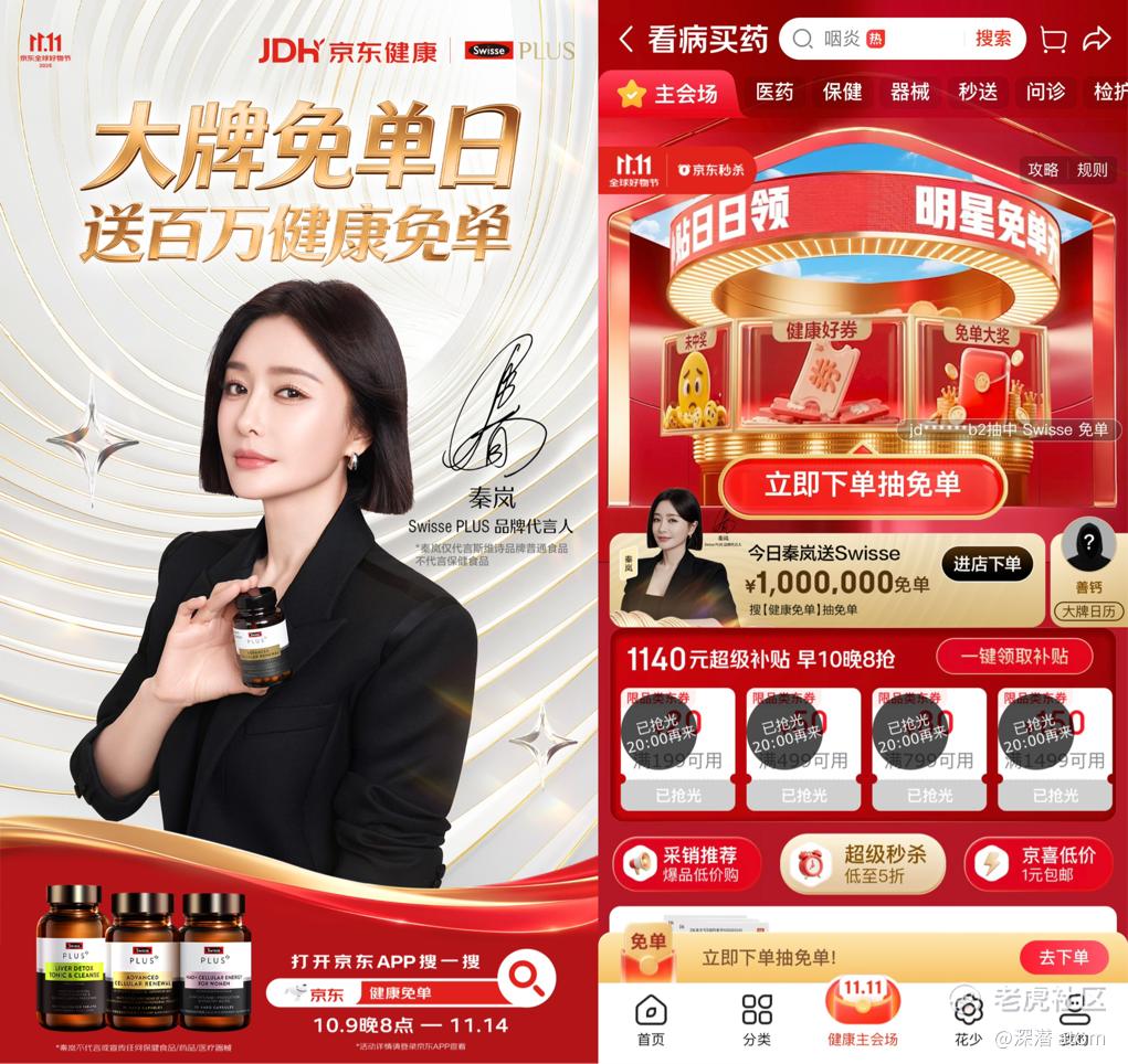 秦岚喊你10月11日来京东买药 Swisse斯维诗送百万健康免单