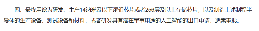 既然提到半导体,这里还有一点是值得关注的,我并非法律的专家,但我对于下面这一条的理解是,中国已经有能力生产高端乃至尖端的半导体芯片。