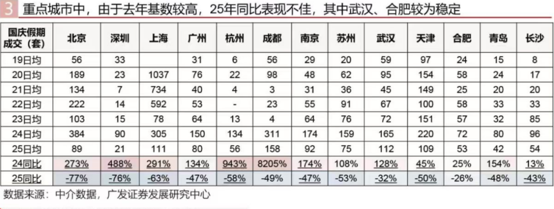 这里提一句,之所以看二手房指标,是因为它更容易被查询。新房的销售数据,因为认购口径更宽松,加上很多城市假期不能备案,所以不能准确折射2025“金九银十”的成色。