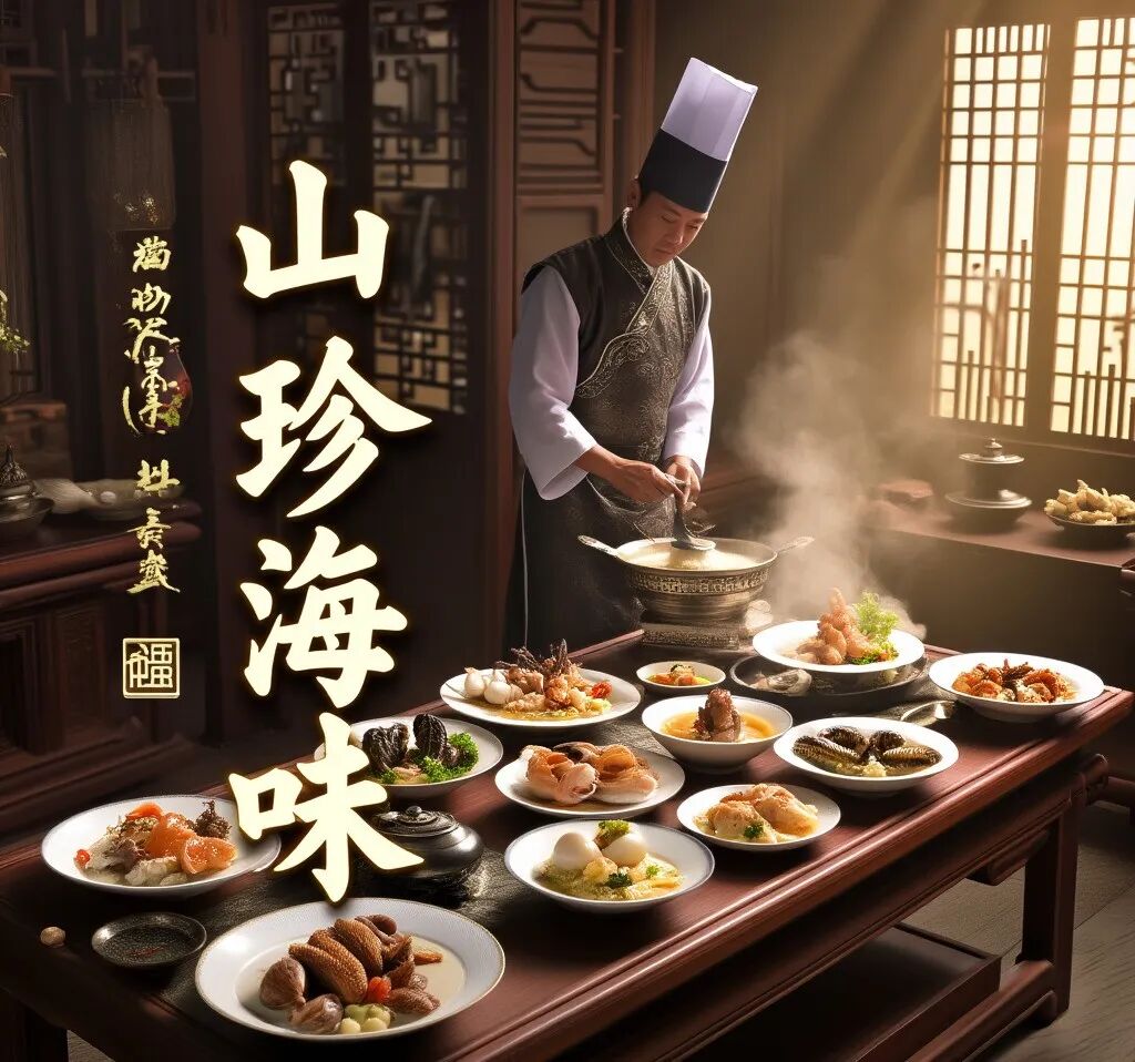 所谓“八荤”,即古代“八珍”,代表宫廷荤菜体系,其具体内容在不同时期有所变化,一般可分为“山八珍”和“海八珍”,也就是我们常说的“山珍海味”。总体而言,指代的是较为珍贵、美味的动物性食材。