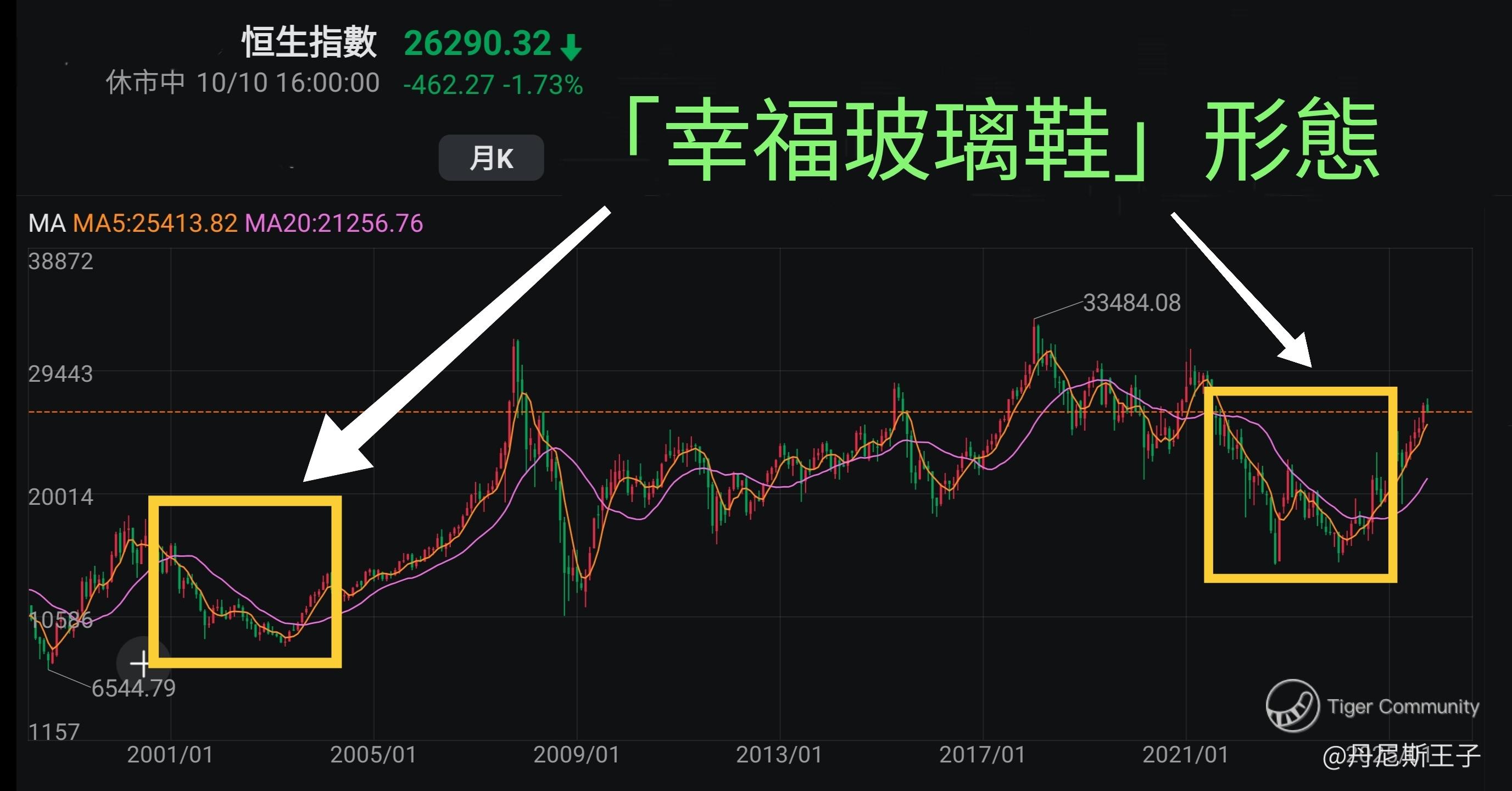 恒生指数月线图走著「幸福玻璃鞋」形态: